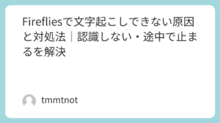 Firefliesで文字起こしできない(認識しない/途中で止まる/失敗)を最短で解決。原因の切り分け→番号付き手順→手順表で、やることがそのままコピペで完結。仕様は変わるため最新は公式で確認。