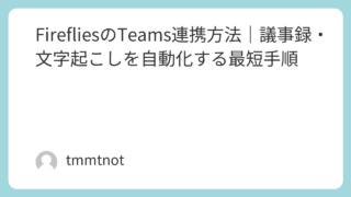 FirefliesのTeams連携(議事録・文字起こし)を、最短→原因→番号付き手順→切り分けで「そのままコピペで完結」する形に整理。仕様は変わるため最新は公式で確認。
