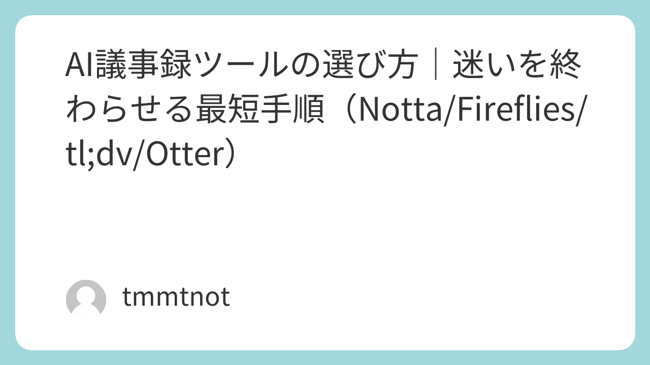 この記事は、AI議事録ツール(Notta / Fireflies / tl;dv / Otter など“全般”)を対象に、あなたが次の行動を決めるために書いています。