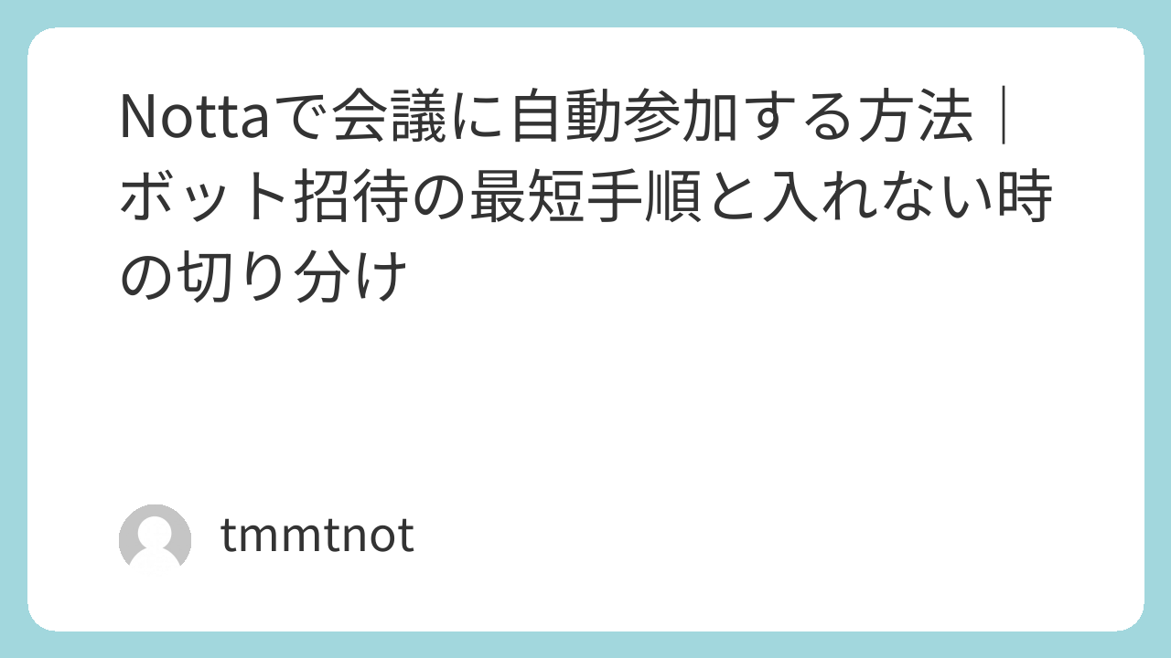 Nottaの会議自動参加(Bot)は、招待方法と会議ツール側の制限(待機室/権限)でつまずきやすい機能です。