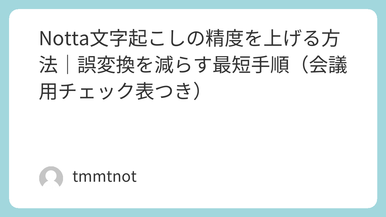 Notta文字起こしの精度を上げる方法|誤変換を減らす最短手順(会議用チェック表つき)