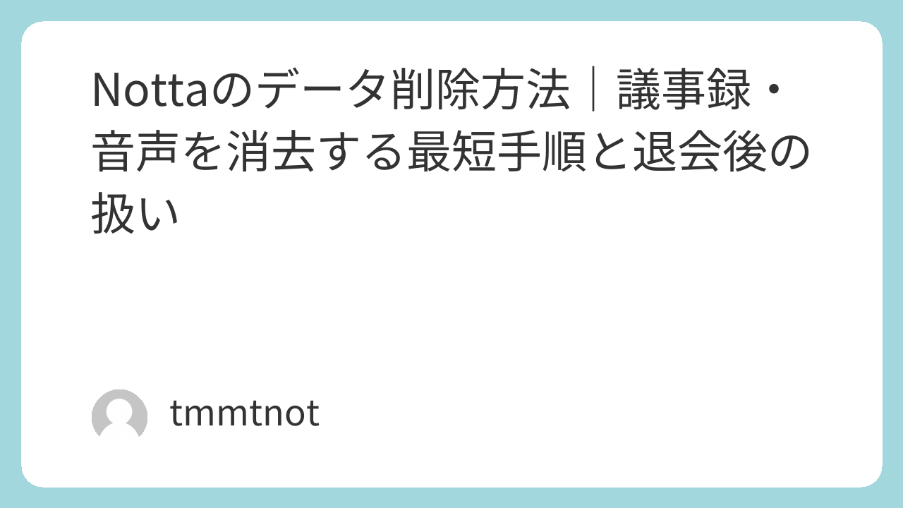 Nottaでも、削除の対象が「議事録テキスト」「音声/動画」「共有リンク」「エクスポート済みデータ」「共有相手側のコピー」などに分かれるため、手順を間違えると不安が残ります。