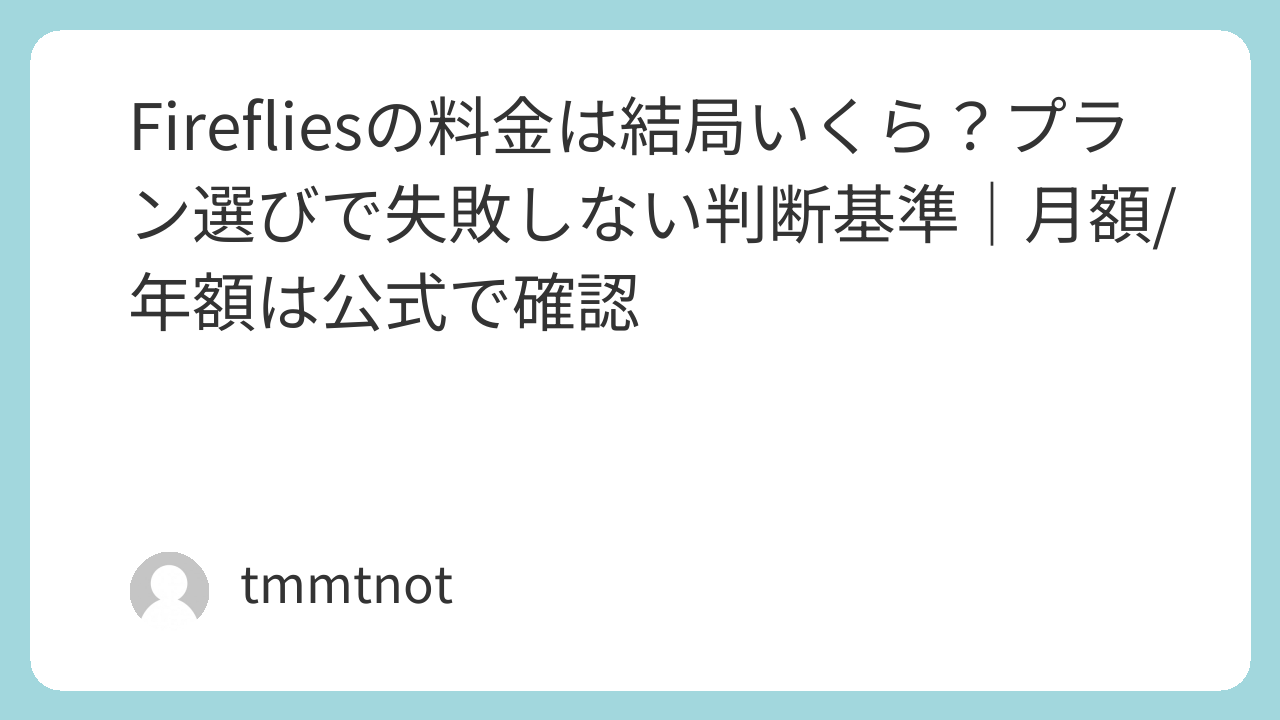 この記事は、Firefliesの料金・プランで迷う人が、次の行動(無料体験で試す/導入する/やめる)を決められるように、判断基準から整理します。