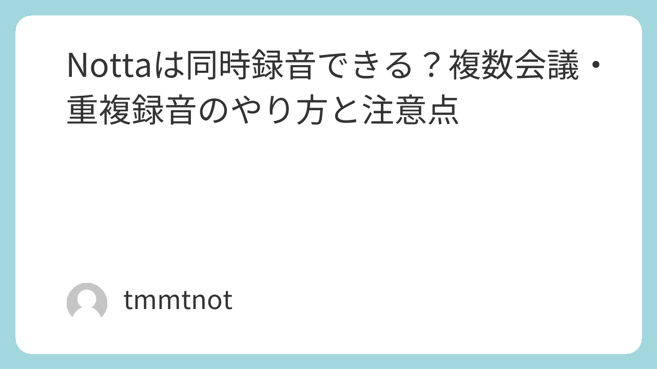 - 録音の重複:同じ会議を複数経路で録ると、音声が重複して後処理が面倒になる