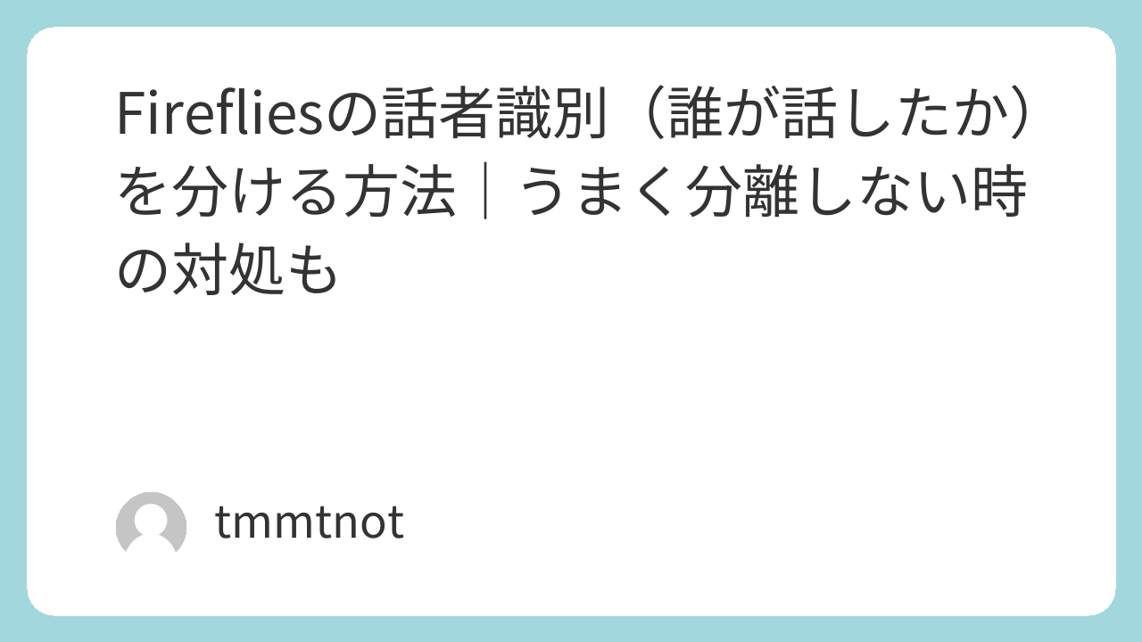 Firefliesの話者識別は、環境(音質・同時発話)で8割決まるタイプの機能です。まずは「表示が出るか」を確認し、次に「要点が出る区間だけ」話者を整えるのが最短。うまくいかない場合は、録音環境と運用ルールを改善するのが近道です。