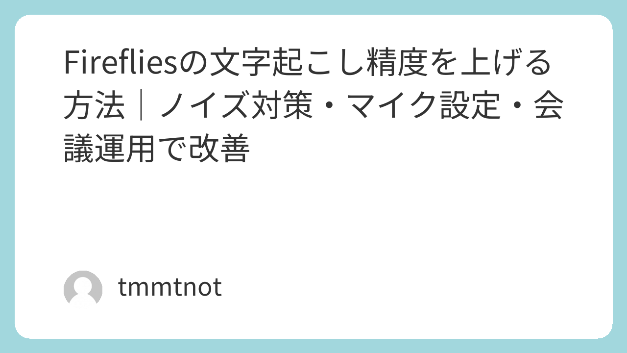 Firefliesの文字起こし精度は、「AIの性能」だけで決まるわけではありません。音声の質(マイク/ノイズ)と、会議の運用(話し方/発言ルール)で、体感は大きく変わります。この記事は、検索ユーザーが迷わないように改善インパクトが大きい順に並べています。