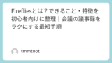1. Fireflies内に残るデータを分類する(例:録音/文字起こし/要約/メモ/共有リンク/参加者/連携)