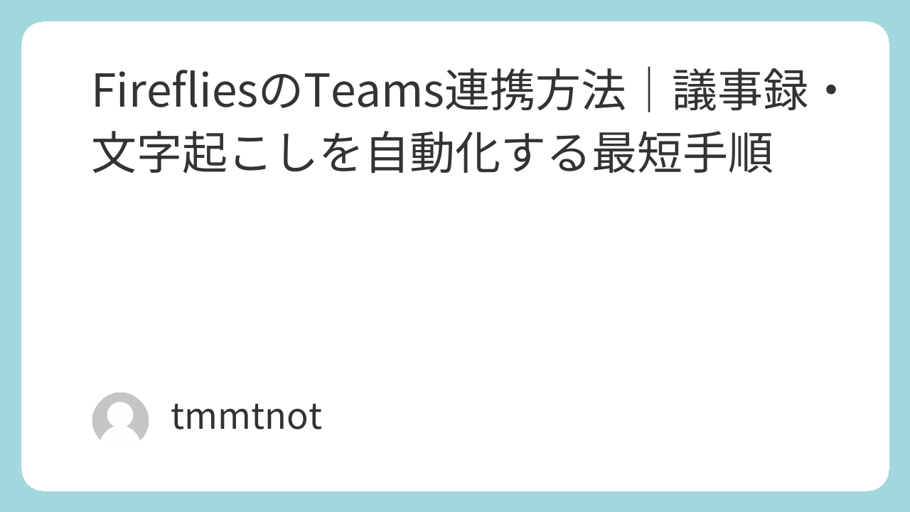 FirefliesのTeams連携は、①Microsoftアカウントで接続(権限承認)→②自動参加ON→③ロビー/参加者設定の確認→④テスト会議の順で進めると迷いが終わります。